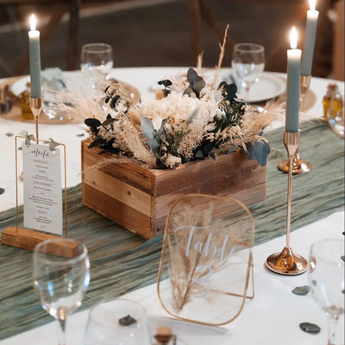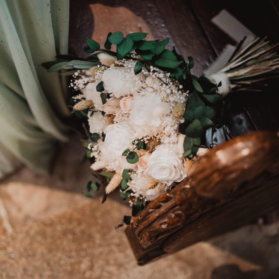 L'élégance intemporelle des fleurs séchées et stabilisées. Chaque mariage est unique, et vos fleurs doivent l’être aussi. Je propose des compositions personnalisées sur devis, pensées pour correspondre pleinement à votre mariage et à vos souhaits.